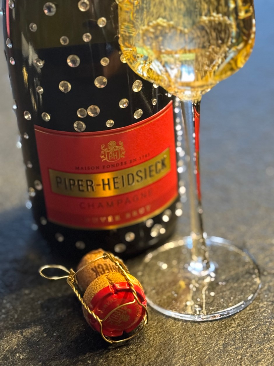 Ik maak vandaag ook wat tijd voor wat creativiteit. Ik pimp de fles champagne op die ik voor mezelf kocht ter ere van mijn nieuwe baan.