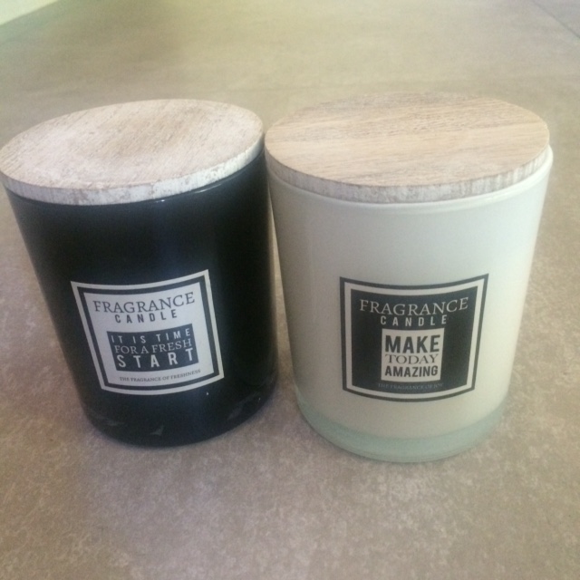 De witte kaars heeft een zwart met wit etiket met daarop de tekst “make today amazing“. De geur wordt omschreven als “the fragrance of joy“. Ik vind de geur inderdaad plezierig ruiken : heerlijk en fris; een beetje citrusachtig. Ook deze kaars geeft niet heel erg veel geur af. Mocht je je overigens aan het etiket storen, deze laat zich makkelijk verwijderen.