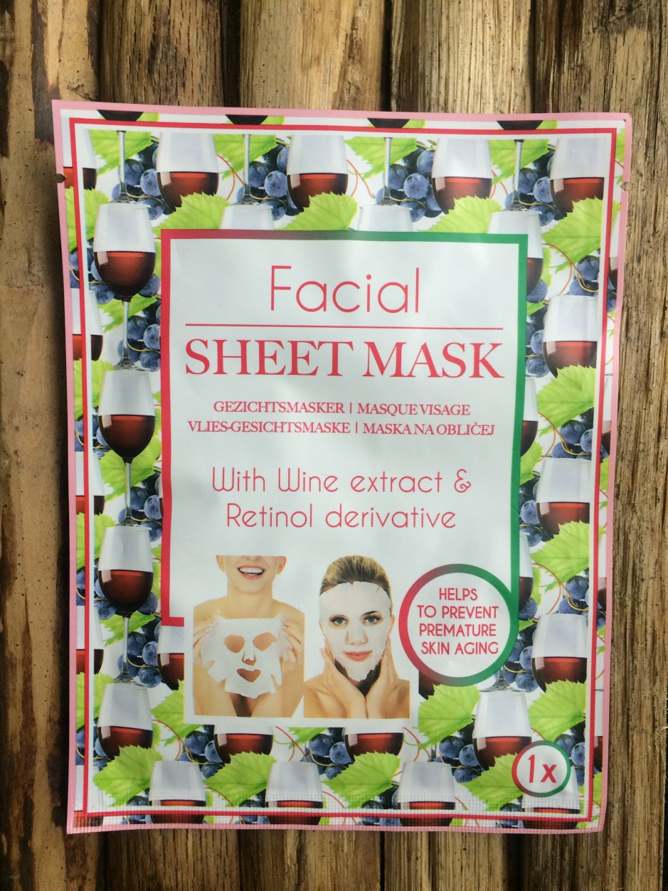 Het Facial Sheet Masker With Wine extract & Retinol derivate is een superhandig masker, dat een heerlijk verzorgend effect heeft. Mijn huid heeft de hele dag verfrist aangevoeld. Of ie daadwerkelijk voortijdige tekenen van ouderdom vermindert weet ik niet, maar ik ga ‘m zeker vaker aanschaffen, want het is eigenlijk heel erg fijn en ontspannend om een maskertje te nemen. Zeker zonder die kliederboel.