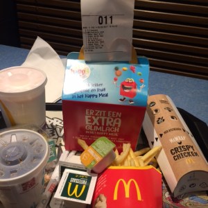 Na de bios gingen we naar het reuzenrad. We hadden prachtige uitkijkjes, en genoten volop. Na het reuzenrad wilde Dochter nog even shoppen bij de Intertoys, en inmiddels hadden we ook nog een andere gokhal ontdekt, waar we allebei nou net zo’n zin in hadden. Omdat we nog zoveel wilden doen, en de tijd inmiddels maar doorging, meldde ik Dochter dat we wat mij betreft dan maar bij de McD gingen eten. Normaal gesproken ben ik daar echt geen fan van, en als ik het kan vermijden, dan doe ik daar alles voor, dus Dochter dacht in eerste instantie dat ik een grapje maakte. Maar nee hoor, in dit geval was het serieus : eten bij de McD, je weet sowieso dat het lekker snel gaat ! So little time, so much to do.