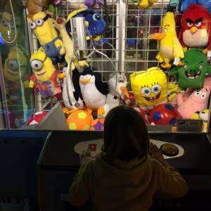 Na het eten gingen we naar Funland, waar je met de diverse spellen punten kon verdienen voor prijsjes. We gingen los bij de diverse machines, kregen heel veel tickets van mensen, en Dochter was blij met de griezelkunstgebitten die ze ervoor “kocht”.