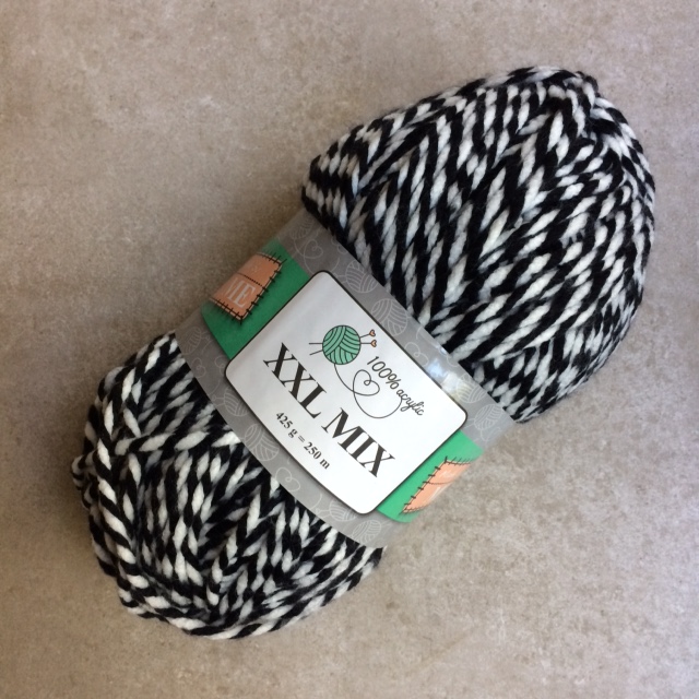 Bij Zeeman kocht ik een opblaasbare plastic poef en het plan is deze te gaan omhaken met dit garen.