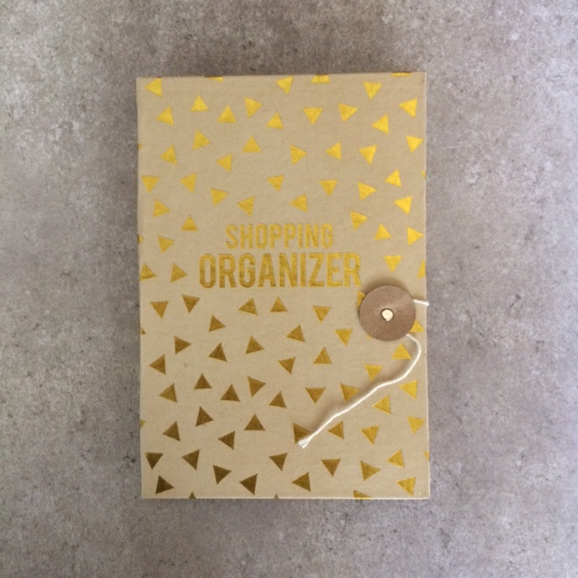 Ik viel voor de buitenkant, ik houd wel van die kartonnen look met gouden opdruk. Maar toen ik ‘m openklapte, was ik helemaal positief verrast. Er zitten niet alleen 60 notitievelletjes in, maar ook een superhandige waaier, waar ik bonnetjes of losse (spaar-)zegeltjes in kan doen. De plastic pen is leuk, maar die vervang ik door een ander, dat begrijp je ;-). Ik ga het met deze shopping organiser (bijna) nog leuk vinden, boodschappenlijstjes maken !