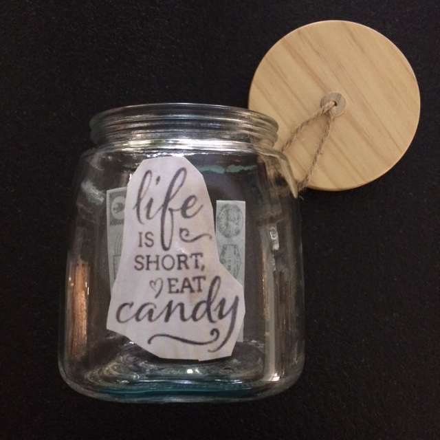 Allereerst heb je een leuke tekst nodig. Misschien heb je er zelf al een, wil je een wens voor iemand erop schrijven, of anders kun je op Internet genoeg inspiratie vinden. Ik ging voor de tekst “life is short, eat candy“.