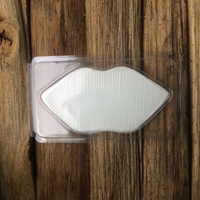 Het lipmasker dat de vorm van een grote mond heeft zit in een doorzichtig bakje en is doordrenkt met vloeistof. Het masker laat zich makkelijk pakken en voelt drillerig maar wel stevig aan. Een beetje zoals het speelslijm van mijn dochter, als je begrijpt wat ik bedoel ..
