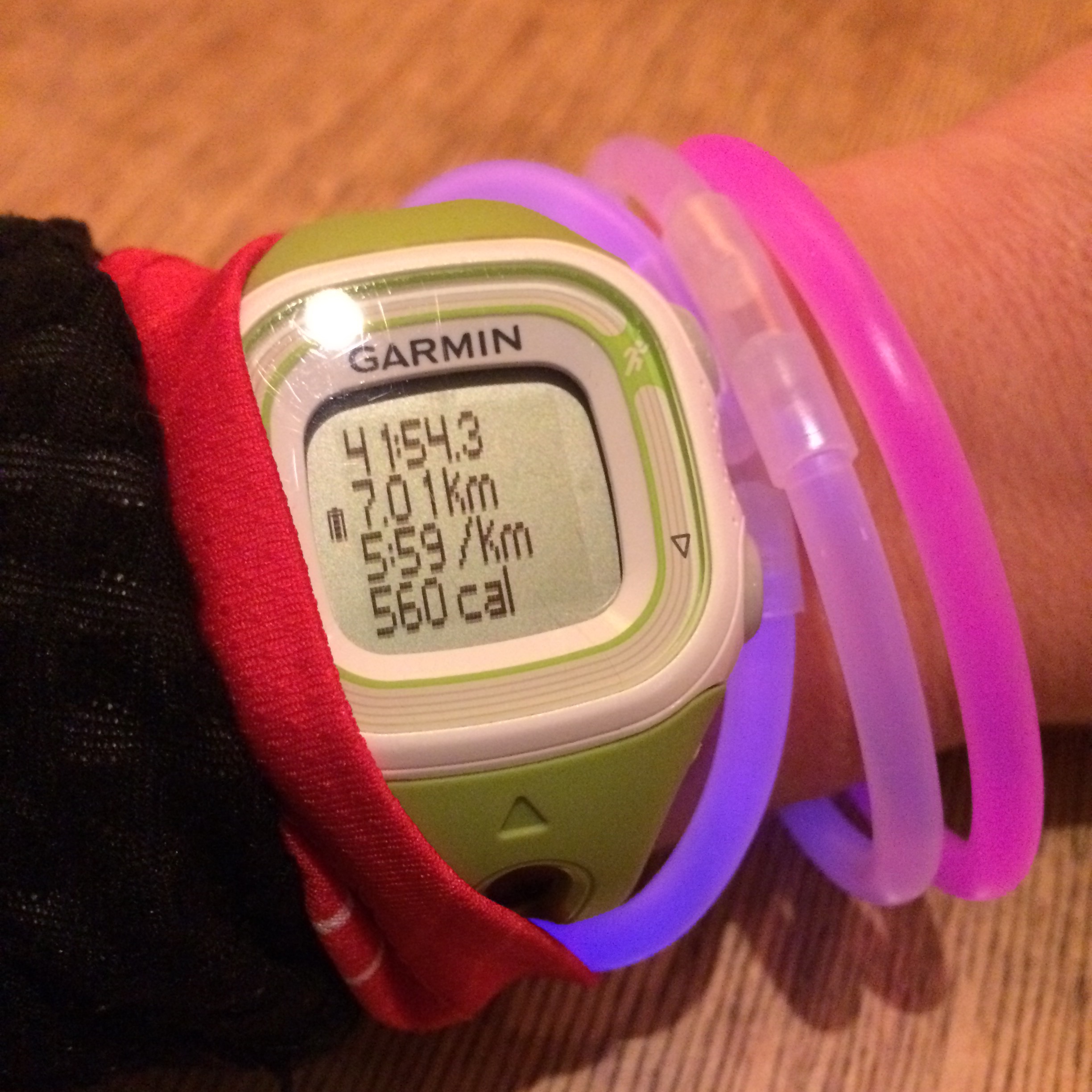 Het 7 kilometer lange parcours wordt in het donker gelopen, en er zijn stukken waar het serieus donker is. De eerste kilometers liep ik nog in de regen, maar na een kwartiertje was het droog. Uiteraard was ik inmiddels wel volledig doorweekt, en met name mijn vingers waren koud en voelden dood aan. Ook mijn handschoentjes waren helemaal nat, dus die konden mijn handen helaas niet meer verwarmen. Vooraf had ik me voorgenomen niet voor een snelle tijd te gaan, maar gewoon te genieten. En dat heb ik gedaan, ondanks het feit dat ik compleet verregend was.