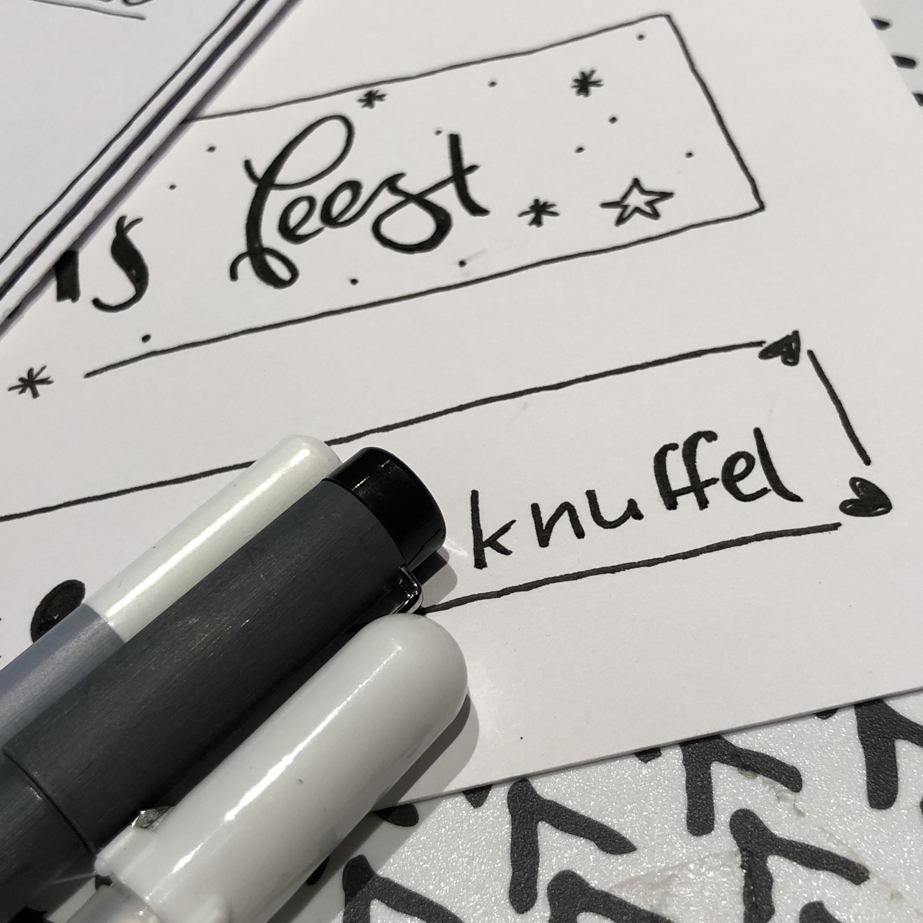 Hierna duik ik lekker onder de warme douche, en er is nog wat tijd voordat we gaan, dus ik besluit deze tijd te benutten met wat ontspanning in de vorm van een uurtje handletteren. Ik maak wat kleine cadeaukaartjes, en experimenteer wat met verschillende technieken.