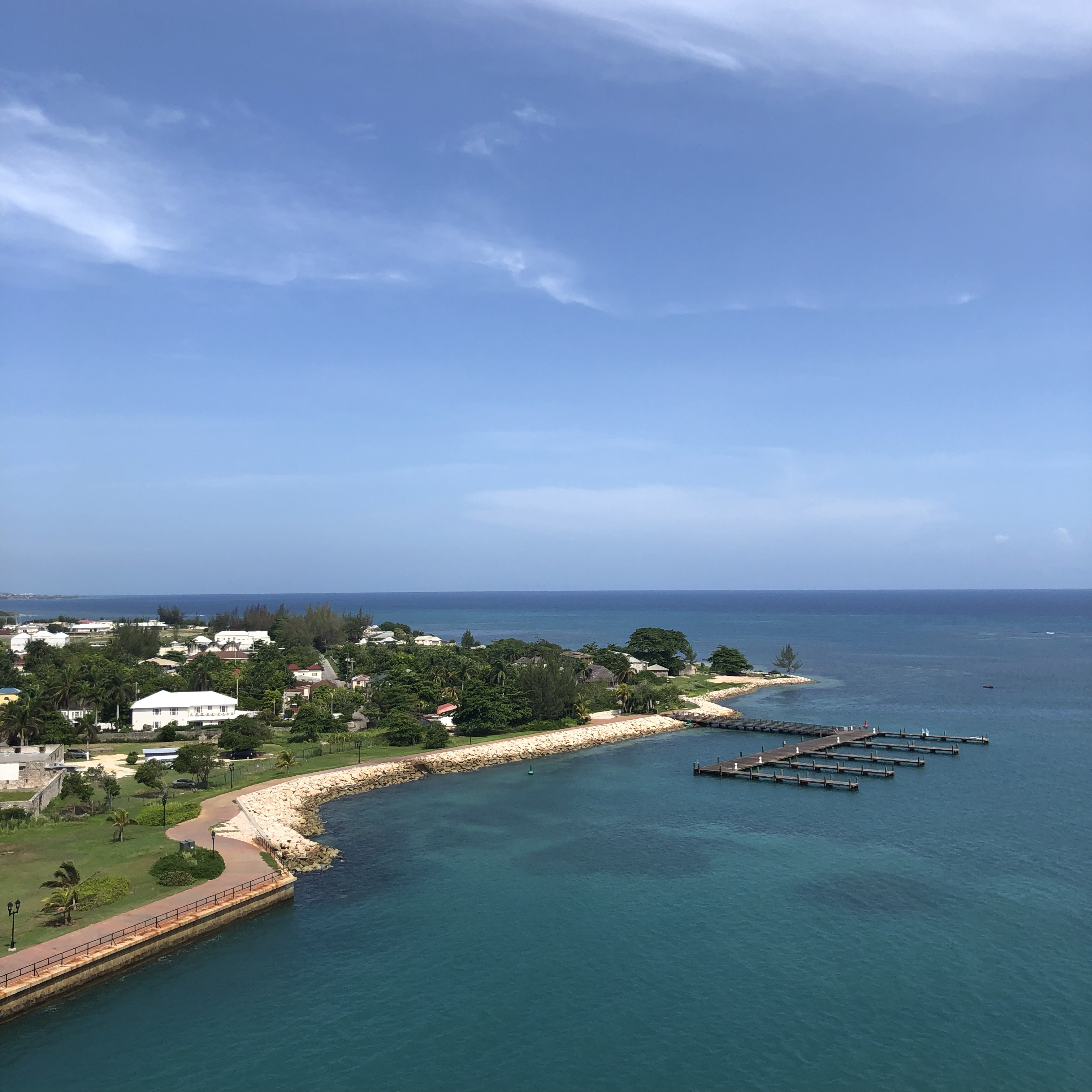 Als ik mijn ogen open doe, ligt de boot al aangemeerd in Falmouth, Jamaica, en ik word getrakteerd op een prachtig uitzicht. Wow, wat is Jamaica groen qua vegetatie, dat had ik niet verwacht !
