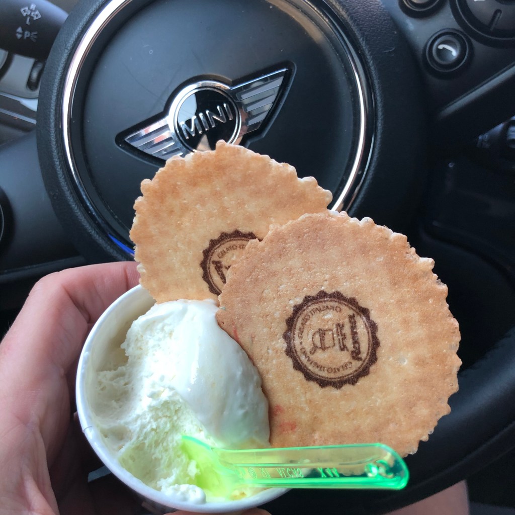 Vanavond eten we met z’n 3-tjes bij de plaatselijke shoarmatent en voordat we naar huis gaan halen we eerst nog even een toetje bij de ijssalon. Vanwege de hitte eten we die maar in de airco van de auto op.