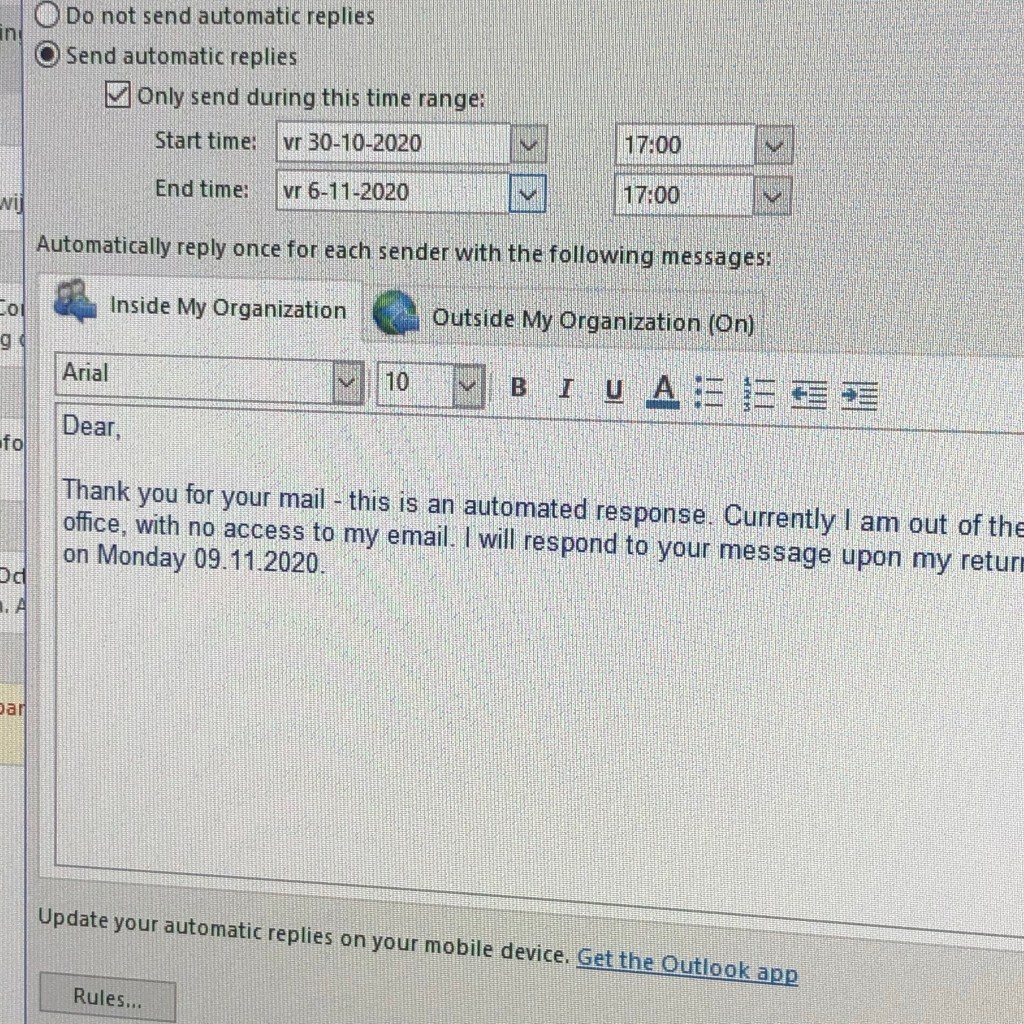 Om 17.00 uur schrijf ik mijn overdracht voor mijn duo collegaatje en zet ik mijn out-of-office aan. Want vanaf vandaag heb ik een weekje vrij. En al heb ik dan nog geen concrete invulling voor mijn vrije dagen, ik kijk ernaar uit lekker uit te slapen, te keuvelen, en hopelijk toch wat leuke uitstapjes te kunnen ondernemen.
