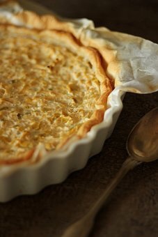 - Giet het mengsel in de vorm, zet de quiche in de oven, et voila, je kunt aan tafel.