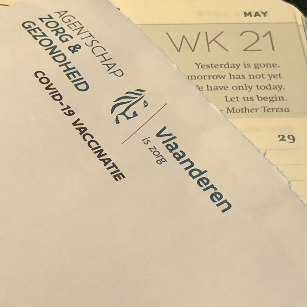 ‘s Ochtends ligt bij de post een belangrijke envelop: de oproep voor mijn covid-19 vaccinatie.