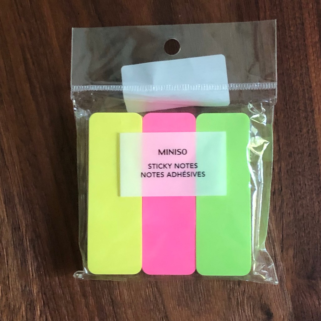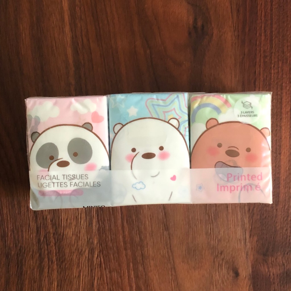 Een nieuw brooddoosje inclusief bestek van de schattige BARE BEARS. Ik ken deze beertjes niet, maar vind ze er enorm schattig uitzien. En laat er nou heel veel van deze beertjes te koop zijn bij Miniso. Prijs : EUR 6.00.Deze nam ik gewoon voor de leuk mee. Omdat de X zo’n mooie letter is. Prijs : EUR 0.50.Stationery en sticky notes. Ik ben er dol op. Prijs : EUR 2.00.Sticky notes met een groot schrijfoppervlak, en in een ander formaat dan die standaard vierkante. Je snapt, deze moesten mee. Prijs : EUR 1.50.Niet alleen praktisch, met dat houdertje, maar kijk dan hoe ont-zet-tend schattig die beauty blender eruit ziet! Prijs : EUR 5.00.Een van de aanwinsten waar ik het meest blij mee ben; een houder om mijn iPhone goed op te positioneren tijdens videocalls of Netflix-sessies. De kleur (roze-goud) vind ik ook zo mooi. Prijs : EUR 6.00.Een pakje geillustreerde tissues van de BARE BEARS. Prijs : EUR 2.00.Glittermarkers ❤ ! Als je me een beetje kent, dan weet je dat dat een onweerstaanbare combinatie voor mij is. Prijs : EUR 6.00.Ik ben heel benieuwd of het gebruik van deze compressiezakken zal zorgen voor meer ruimte in mijn reiskoffer! Prijs : EUR 3.00.De geur die uit de verpakking komt is heerlijk, ik bleef maar snuffelen. Prijs : EUR 3.00.Sticky notes van de Bare Bears. Prijs : EUR 1.50 per pakje. Pakjes tissues komen altijd van pas. Prijs : EUR 4.00 (voor 9 pakjes).Mijn huidige (oprolbare) yogamat was aan vervanging toe, en ik ben superblij met deze mat, die veel minder ruimte inneemt omdat ie opvouwbaar is. Prijs : EUR 12.50.De frisse, winterse (ijzige) geur is zo lekker! Prijs : EUR 7.50.Nog meer sticky notes. Prijs : EUR 3.00 per pakje.En brillendoekjes om mijn zonnebrillen mee op te poetsen. Prijs : EUR 3.00.