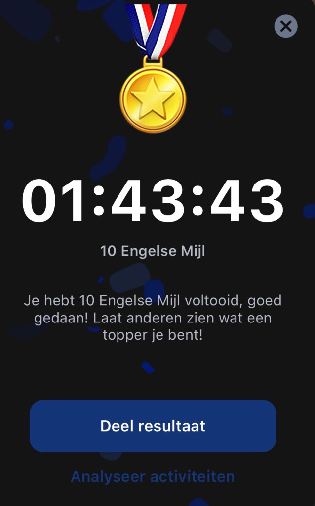 Ik had diezelfde dag ook een run, 10k wel en geen 10 miles hahahaha. Ik ben aan het trainen om volgend jaar ook de Dam tot Dam te gaan rennen 🎉