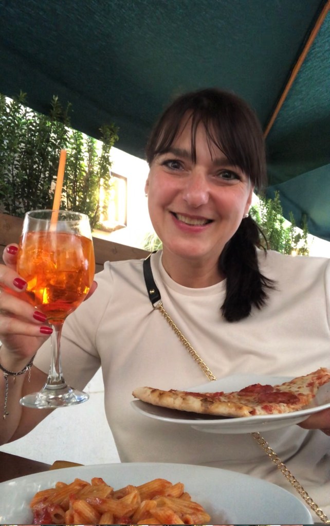 En vandaag vertrek ik naar Italië ! Na een voorspoedige auto- en vliegreis land ik rond 15:30 uur in Verona, waar Mr C, Little Miss C en mijn schoonmoeder al op me staan te wachten. Na aankomst op de camping kleed ik me direct om, en gaan we met z’n 4-tjes eerst even lekker dobberen in het Gardameer. ‘s Avonds eten we buiten de deur, en doe ik me tegoed aan én pizza én pasta. Ik kon niet kiezen, en bedacht me, waarom zou ik eigenlijk ook?!