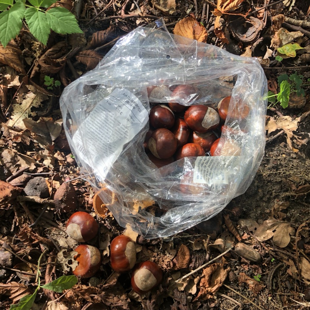 Zoektocht naar kastanjes tijdens mijn lunchpauzewandeling. Ook deze gebruik ik ter decoratie.