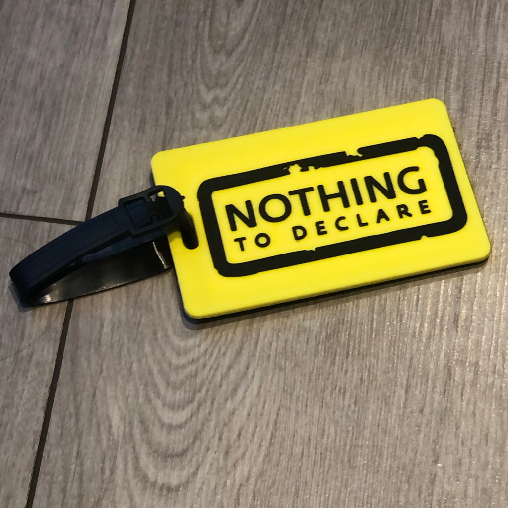 Ik heb een vrij standaard koffer, dus vind het altijd wel handig om ‘m te markeren met iets zodat ie wat meer opvalt. Tijdens mijn laatste reis is mijn kofferriem verdwenen, en ik vond dit grappige bagagelabel wel een leuk alternatief.