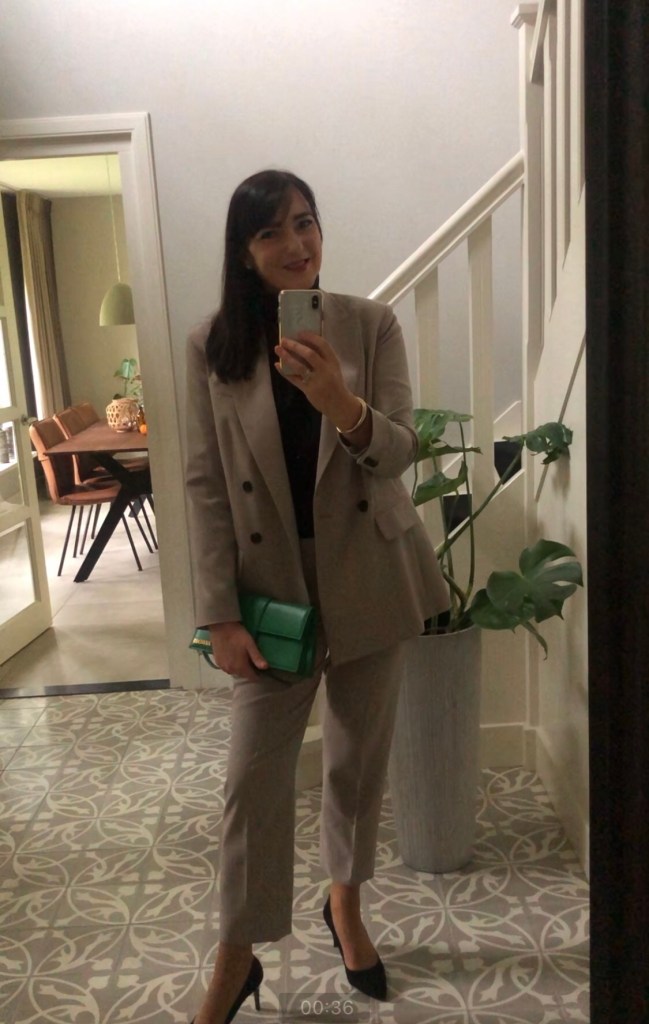 Ik in pak, ik moet er zelf nog even aan wennen.