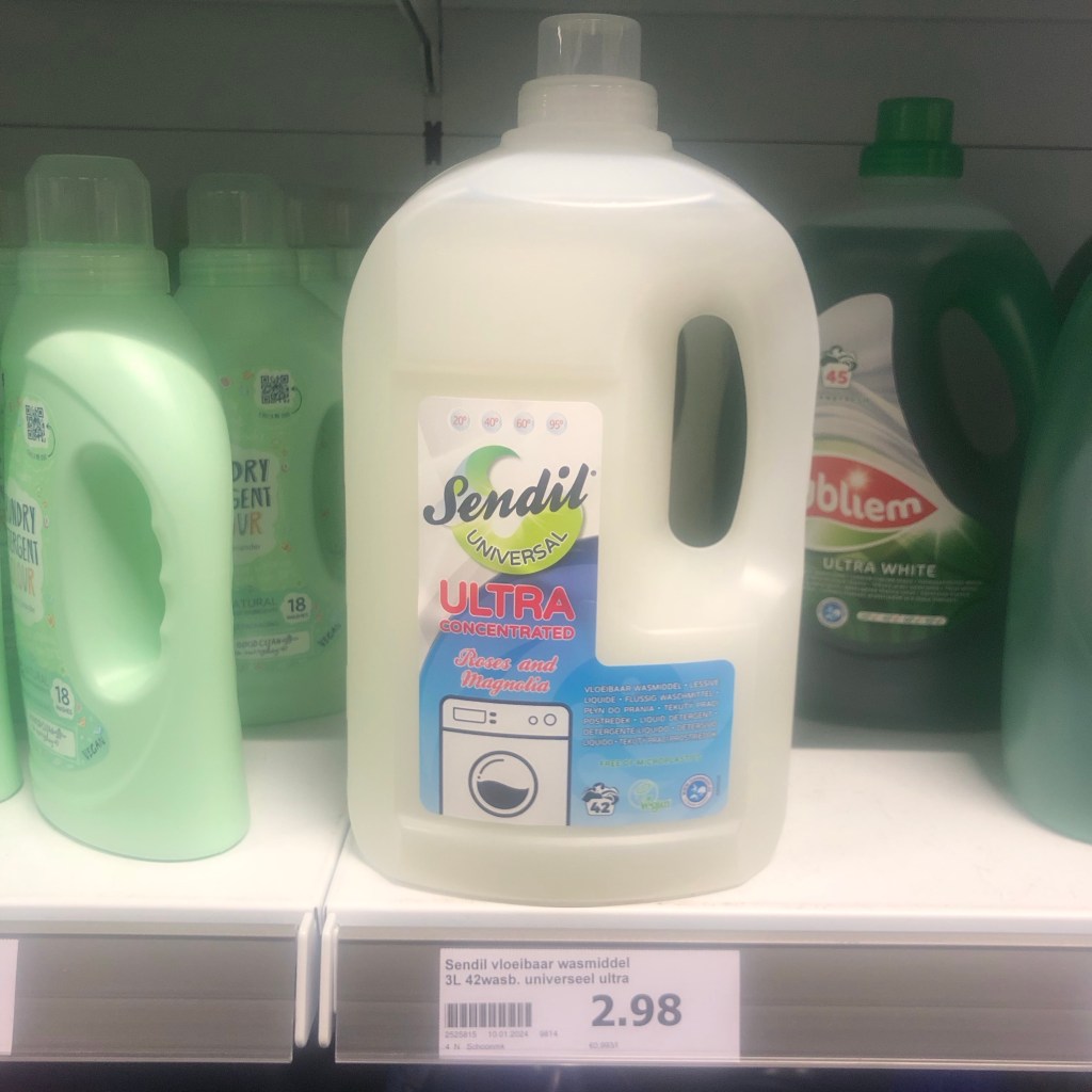 3 l voor €2,98. Normaal gesproken gebruik ik AH Kleurwasmiddel (2,2 l voor €4,69). Ook al niet duur, maar mocht deze wasmiddelhype echt waar zijn, is dit een makkelijke saving !