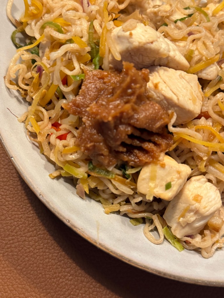 Een ochtend kantoor en een middag thuis vandaag, en ’s avonds maak ik tijd om een lekker maaltje te maken. 75Hard staat voor mij in het teken van een volledige reset, en in dat kader heb ik ook een aantal kookboeken van Broodje Dunner gekocht. Ik val nu namelijk telkens terug op dezelfde succesrecepten, en ik zou daar graag wat nieuwe aan toevoegen. Op het menu staat noodles kip-pinda uit E-BOOK 1 en ik moet zeggen, zeker voor herhaling vatbaar !