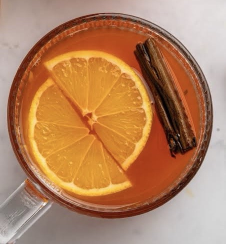 - Schenk in een hittebestendig glas en garneer met een extra schijfje sinaasappel.