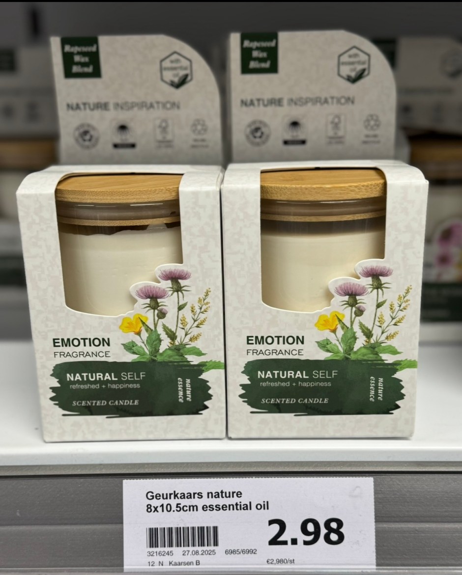 De Action Nature Essential Oil geurkaars (8×10,5 cm) van € 2,98 is wat mij betreft een absolute aanrader. De geurverspreiding is waanzinnig goed, het brandgedrag is netjes en het potje past in vrijwel elk interieur.