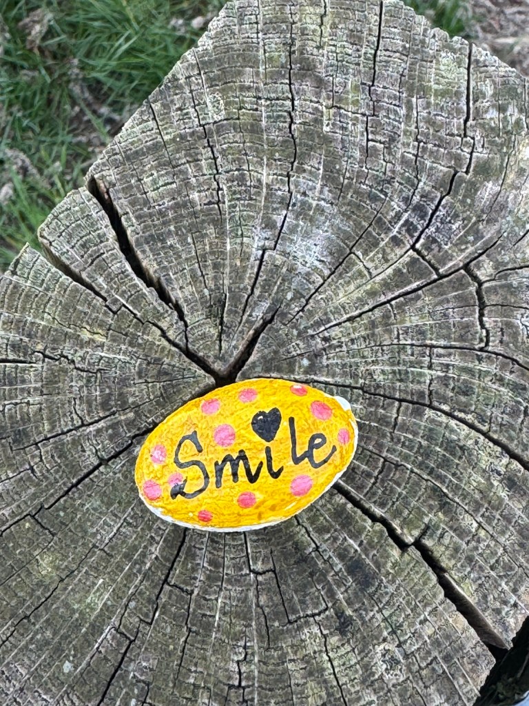Ik word lekker op tijd wakker en besluit mijn dag te beginnen met een fijne wandeling, en terwijl ik iets in de prullenbak wil gooien, zie ik ineens een Happy Stone liggen, hoe leuk is dat ! Ik vind het geweldig om ze zelf te maken en te verstoppen, maar er zelf eentje vinden blijft toch extra bijzonder; dat kleine momentje van verrassing en blijheid is precies waar ik het voor doe, en ook de reden waarom ik ze maak : in de hoop dat iemand anders datzelfde geluksgevoel ervaart wanneer ze er eentje ontdekken.