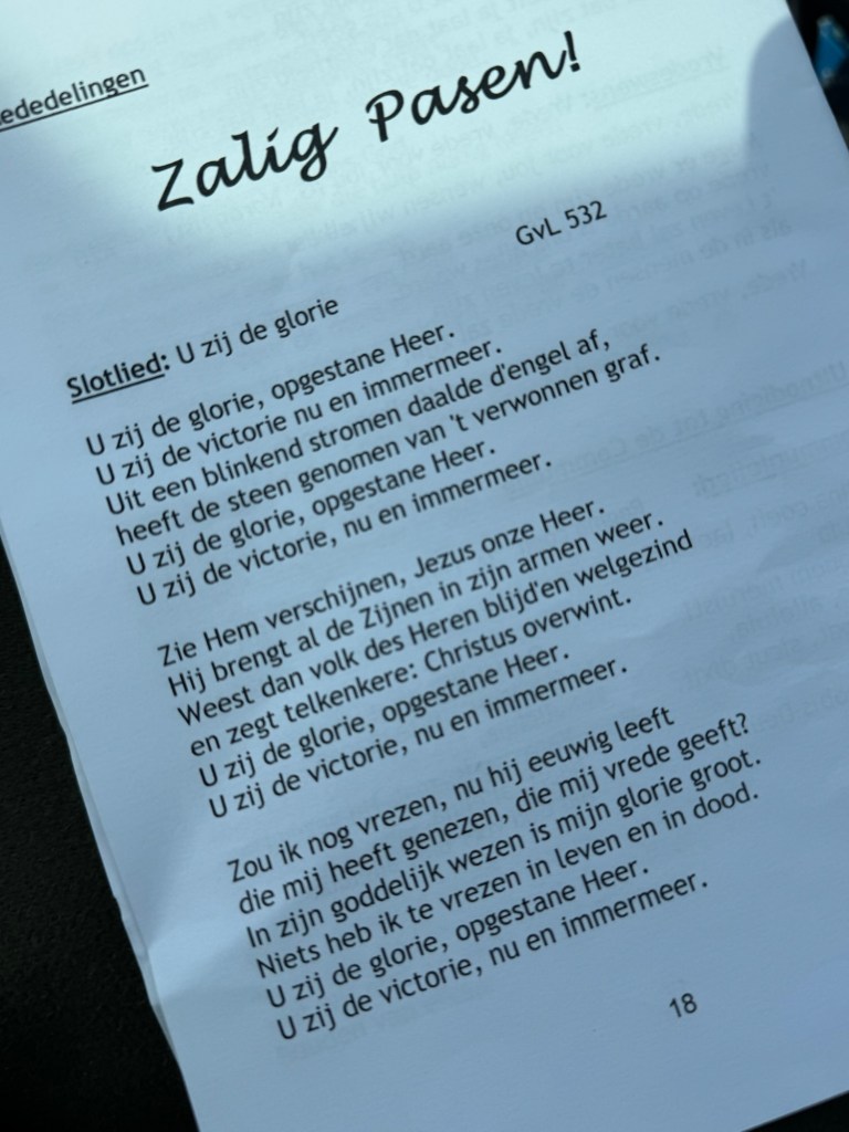 Anders dan andere jaren vieren we Pasen vandaag niet thuis, maar bij mijn schoonmoeder. We gaan eerst naar de Kerk en daarna schuiven we aan bij de gulle paastafel die zij heeft bereid. Een heerlijke dag van samenzijn.
