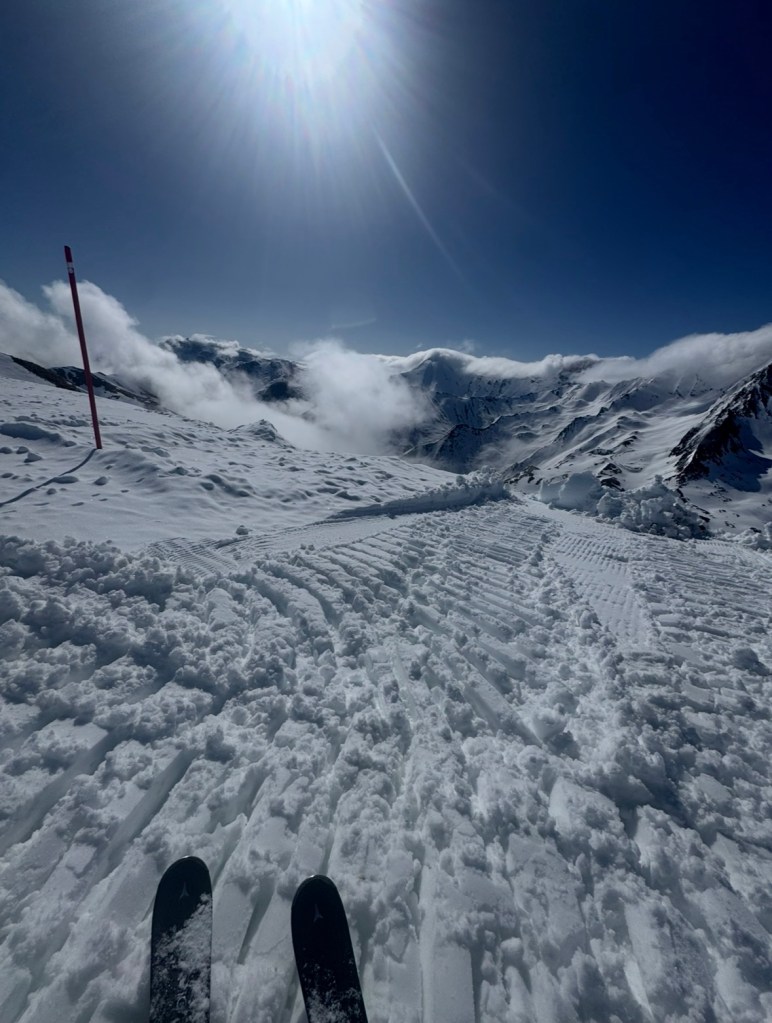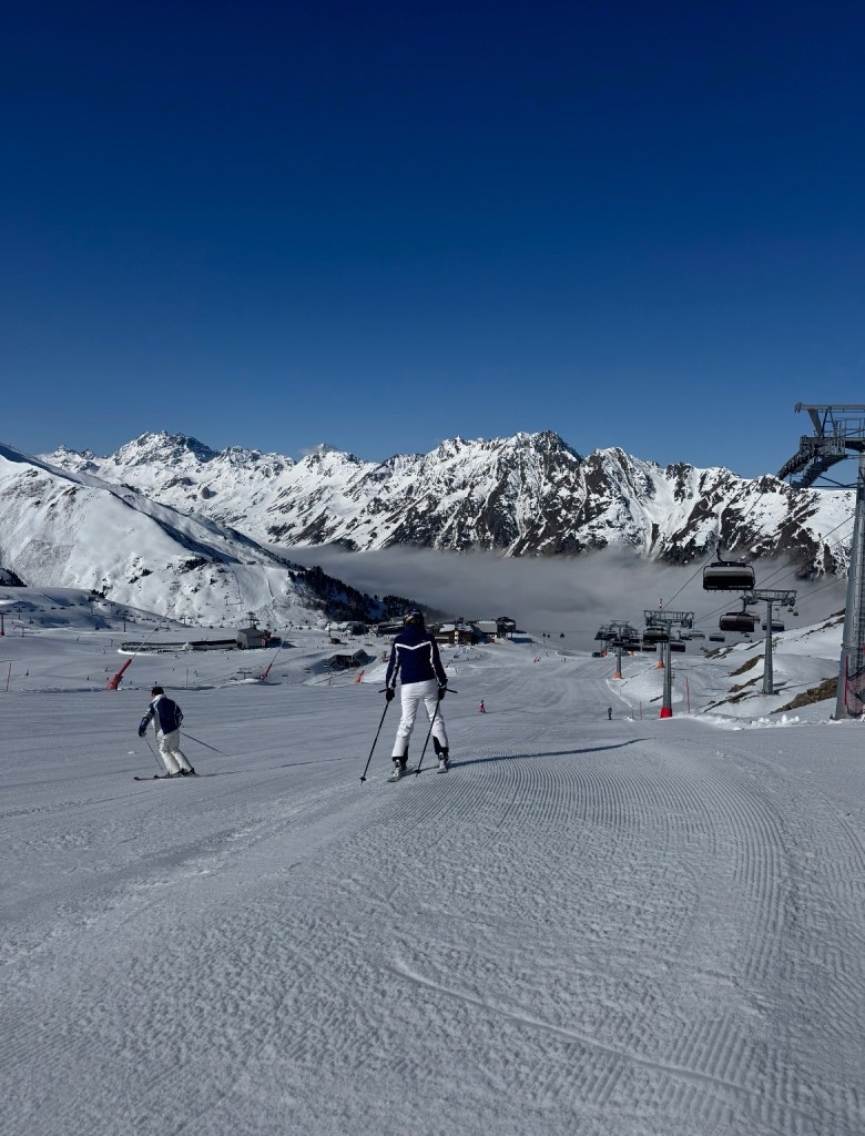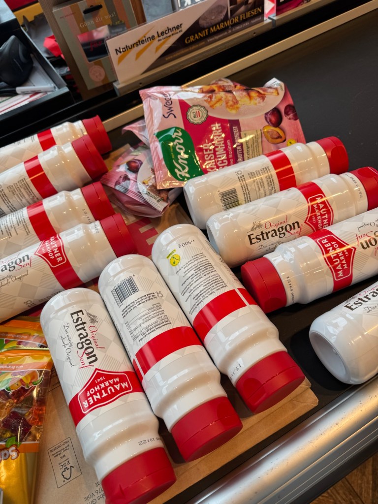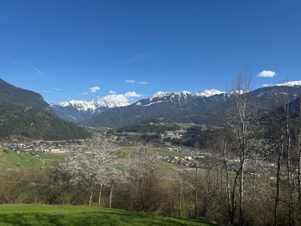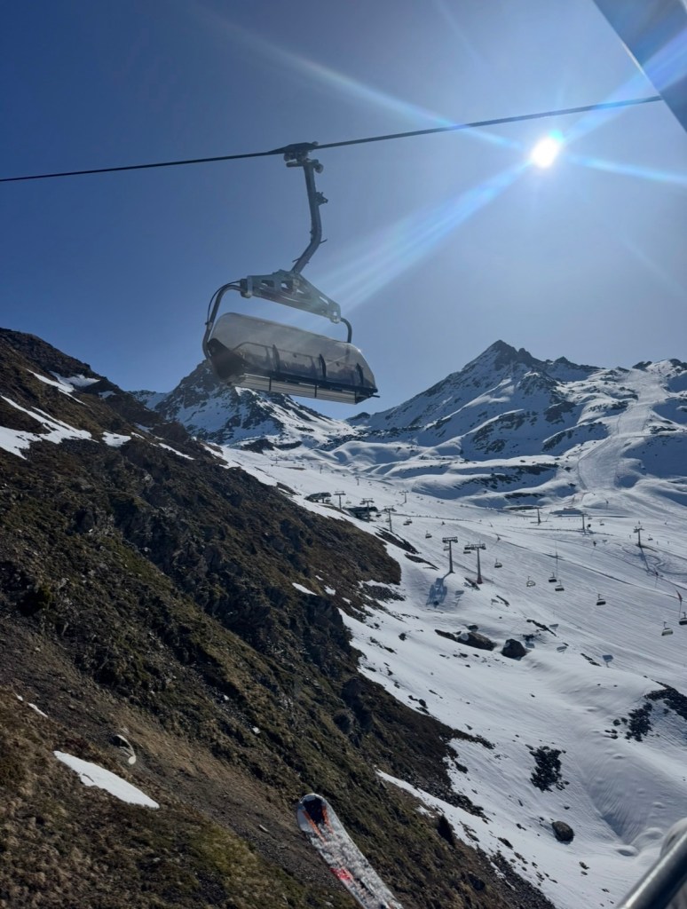 We vertrekken lekker op tijd, en volgens de navigatie komen we laat in de middag in Ischgl aan. We hebben er zin in !De reis verloopt voorspoedig en bij aankomst in Oostenrijk krijgen we een goede indruk van hoe het er in de zomer uit moet zien … Hopelijk ligt er nog genoeg sneeuw op de berg. We trappen onze eerste (en onze laatste) avond traditiegetrouw af met Wiener Schnitzel mit Pommes, dat vind ik zo lekker !De volgende dag vertrekken we op tijd naar boven. Er ligt voldoende sneeuw gelukkig, en de pistes zijn uitgestorven, zo rustig. Het is heel fijn skiën zo, met geen wachtrijen voor de liften en in de restaurants.De kwaliteit van de sneeuw is helaas wat minder goed. De temperaturen zijn hoog, en dat maakt de sneeuw al snel papperig en het skiën zwaar.Het is aan alles duidelijk merkbaar dat het bijna einde seizoen is. Het heeft zo z’n voor- en z’n nadelen, zullen we maar zeggen. Gelukkig krijgen we na een paar matige dagen qua sneeuwkwaliteit en zicht een nacht met een koufront en worden we wakker met Kaiserwetter en verse sneeuw.Zo groen als dit hebben we het nog nooit gezien. ‘s Ochtends vroeg is de sneeuwkwaliteit goed dus we besluiten de rest van de dagen vroeger op te staan en de eerste lift te nemen.En zo kunnen we toch nog mooie tochtjes maken.De avonden brengen we zoveel mogelijk off-line door. Met spelletjes Uno en Regenwormen. En ik begin -tig jaar na de hype aan het eerste deel van De Zeven Zussen-serie*, een enorme pil van bijna 600 blz. Ik word enorm gevangen door het verhaal, en lees al-met-al wel 300 blz weg. En dan zit het er alweer op. Ik ga voor vertrek nog even naar de lokale supermarkt voor een voorraad Ritter Sport, Haribo en een paar liter mosterd. Deze van Mautner Markhof is oprecht de lekkerste, en als mosterdlover durf ik dat wel te beweren.Tschüss Ischgl, tot volgend jaar ! Dan komen we weer lekker rond de Krokus want dat bevalt ons toch wat beter.