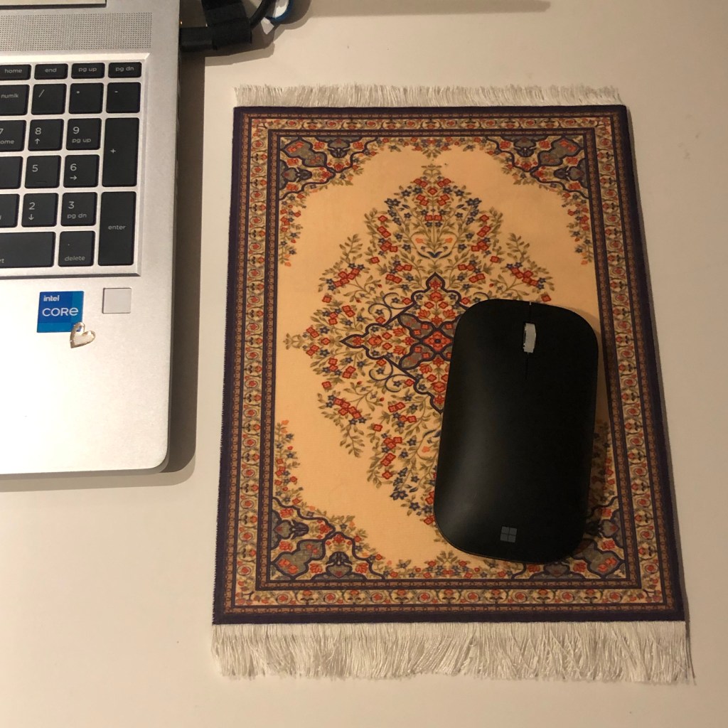 Té leuk vond ik deze muismat in de vorm van een Perzisch tapijt. Ik nam m mee als souvenir uit Dubai.