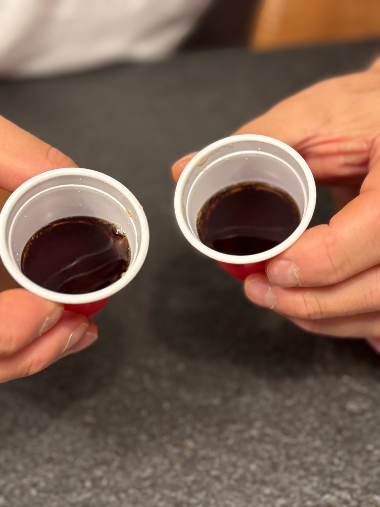 - Dat laatste krokant geworden restje kaasfondue (die licht gekarameliseerde laag op de bodem van de pan) is een traktatie op zich. Om de kaas goed los te krijgen, kun je er een eitje bij breken en er voorzichtig doorheen roeren. Dit romige, kazige roereitje is voor mij altijd de “grande finale” van de avond : een klein feestmomentje na al het dipplezier.