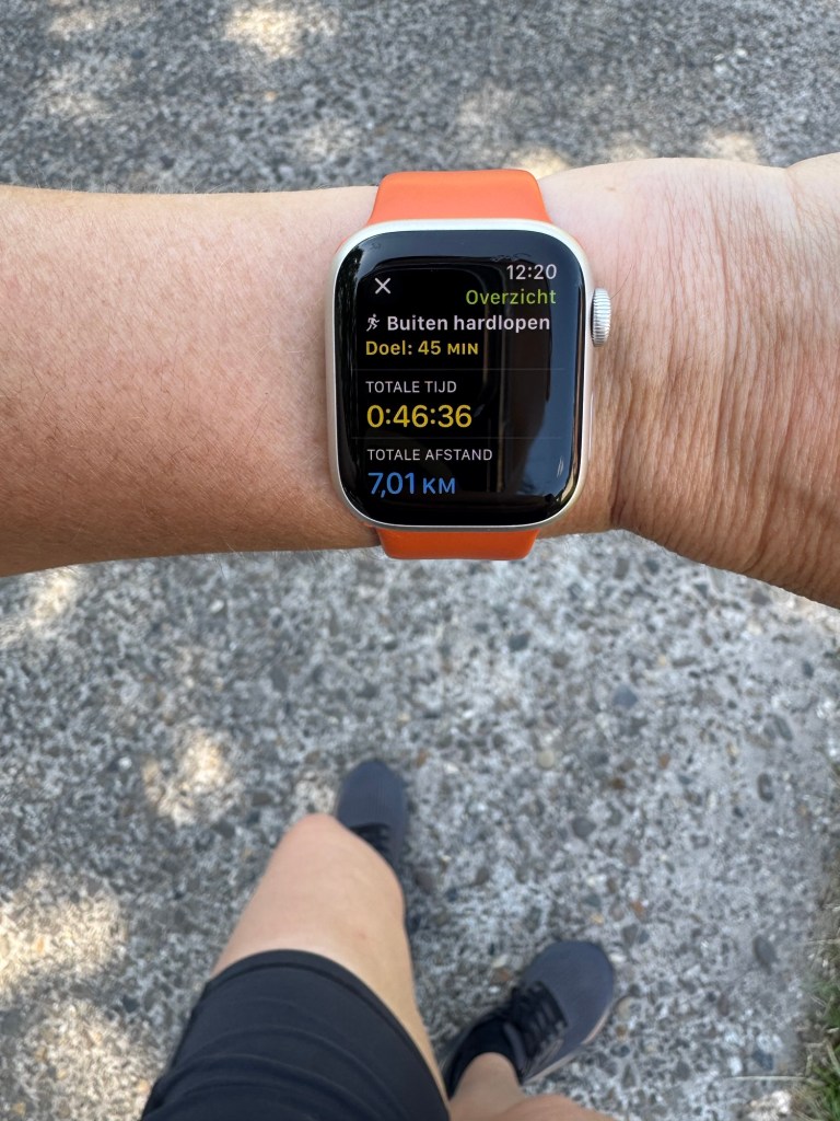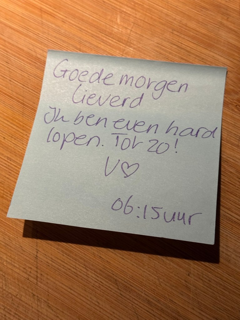 Dag 1. Na het zien van een TikTok-filmpje op mijn tijdlijn vannacht besloot ik vrij spontaan te starten met de challenge. Ik dacht er al langer over, maar iets hield me telkens tegen. Vannacht bedacht ik me dat de tijd waarschijnlijk nooit ideaal zou zijn. Dus ik maakte een wand met 75 post-its, en bereidde me mentaal voor. Ik start de dag met een Body Flow-workout en eindig met 10 blz lezen. Er tussendoor doe ik de rest van de regels, en het gaat me allemaal vrij gemakkelijk af. Met een goed gevoel sluit ik deze eerste dag af. Dag 2, ik heb mijn targets aangepast naar : bewegen 500 kcal (was 390 kcal), trainen 90 minuten (was 30 minuten), en staan heb ik op 12 uur gehouden. Vanaf nu ga ik elke dag weer mijn Apple Watch dragen zodat ik goed inzicht heb ik mijn daadwerkelijke activiteit. Deze foto toont de resultaten van vandaag, overdrijven is ook een vak hè! Dag 3. Na mijn ochtendworkout (een wandeling in de buitenlucht) is het tijd om mijn 10 blz te lezen, en een zelfgemaakte groene smoothie te drinken. Uiteraard is mijn Dopper met water ook van de partij.Dag 4. We eten witlofsalade met kip als diner. En in het kader van calorierestrictie met meer sla dan kip. Dat is normaal wel anders, hoor. Dag 5, een exta vrije dag vandaag die ik start met een een uur banen zwemmen in het zwembad. Mijn morning workout is weer in the pocket.Dag 6. Al die beweging is prima in te plannen op een vrije dag, maar vandaag, met een werkdag die van 07.30 tot 19.00 uur duurde blijkt de moeilijkheid. En zo komt het dat ik na het eten, om 20.50 uur naar buiten ga om nog een uur te wandelen. Tja. Normaal gesproken zou ik lekker liggen Instagrammen, dus de tijd is er wel. Het is alleen even een knop die om moet, want echt zin heb ik natuurlijk niet.Dag 7. Ik ga naar de cinema en waar ik normaal gesproken altijd Haribo snoepjes pak, en voor een bak zoute popcorn met gele m&m’s ga, sla ik dit keer over. En dat is helemaal ok, ik heb eigenlijk geen enkele craving, dus ik heb ook helemaal niet het gevoel dat ik mezelf iets ontzeg. Wel zo fijn ! Dag 8. Als cadeautje voor mezelf heb ik de kookboeken van Broodje Dunner gekocht, en vandaag staat het eerste gerecht op het menu: noodles-kip pinda. Heerlijk vullend, mager, en belangrijker nog: binnen no-time op tafel.Dag 9. Niet vooruit te branden tijdens mijn lange duurloop. Maar no excuses … nadat ik even bij mag tanken van mezelf op dit bankje moet ik weer door. Als het allemaal makkelijk zou gaan, zou het geen challenge zijn, toch ?!Dag 10. Ik ga uit lunchen en bestel een Ceasar salade krokante kip. Of deze daadwerkelijk caloriearm is, betwijfel ik. Ik besluit dan ook het brood te skippen en een groot gedeelte van de kip te laten liggen. Dag 11. Met de beweging zit het wel goed vandaag. Ik doe mee aan een fun run waar ik onderweg dit soort aanmoedigingspamfletten tref. Ook met de overige punten zit het goed trouwens, dus ook deze dag is weer behaald !Dag 12. Voor deze 75H-challenge hoeft niet alles op de schop, ik had al best aardig wat gezonde routines. Zoals bijvoorbeeld het feit dat hier op maandag standaard versgemaakte soep op het programma staat. En vandaag is dat rode linzensoep.Dag 13. Oudjaarsdag, en ter ere daarvan ren ik vandaag 49 heerlijke minuten voor 49 mooie levensjaren.Dag 14. Mijn 50-ste verjaardag vier ik met deze aardbeiengebakjes voor mijn visite. Zelf neem ik er geen, want : geen toegevoegde suikers deze challenge. En ik moet je zeggen, het kost me ook geen enkele moeite hiervan af te blijven hoor.Dag 15. De eerste 50 heerlijke hardloopminuten als 50-jarige. Dat er nog maar vele mogen volgen !Dag 16. Traditiegetrouw doen mijn lieve Sis en ik altijd iets leuks voor onze verjaardagen en voor dit jaar trakteert zij mij op een Yin Yoga-les, banen zwemmen, loungen en een spicy chicken roll als diner. Alles dus geheel 75H-proof. Dag 17. Hoewel ik me niet op de kilo’s wil focussen (ik denk namelijk dat ik ook wat aan zal komen qua spieren vanwege al dat gesport) toch maar een weegmomentje. Ik heb trouwens geen idee hoeveel ik woog op dag 1., ik vermoed iets van 74,5 kg. Ik voel me wel al slanker en beter in mijn vel, en het lijkt alsof mijn kleding iets losser zit. En dat vind ik het belangrijkst (al zou ik het ook fijn vinden als de weegschaal einde challenge een getal onder de 70 aan zou geven. Al zou het 69.9 zijn)Dag 18. Ook mijn Watch is nog nooit zo actief geweest met meldingen sturen en medailles uitdelen … die weet ook niet wat m overkomt haha … Deze medaille heb ik overigens verdiend voor 7 workouts in de week. Dag 19. Het eerste boek is uit! Die verplichte 10 blz per dag werden er regelmatig meer, zo interessant vond ik dit boek. Ik heb er echt wat van opgestoken !Dag 20. Hoewel het inplannen van de hoeveelheid dagelijkse lichaamsbeweging met name op werkdagen best een uitdaging is, merk ik dat ik voor de rest door de challenge heenvlieg, en dat gebrek aan uitdaging stoort me een beetje. Daarom besluit ik, geïnspireerd door het Klimaatexamen dat ik vandaag deed, een regel toe te voegen : ik wil voortaan minimaal 1x in de week volledig plantaardig eten (wij eten overigens momenteel maximaal 4x in de week vlees/vis).Dag 21. Ik start mijn thuiswerkdag met een ochtendwandeling van 45 minuten en ‘s middags doe ik nog een rondje hardlopen van 60 minuten. Met mijn portie buitenlucht zit het dus ook wel goed vandaag !Dag 22. Aardbeitjes mee als tussendoortje naar het werk; ook dat is een nieuwe 75H regel : ik ga voortaan tussen de middag niet meer naar de AH rijden maar neem mijn snacks van huis uit mee #mms.Dag 23. En boek nummer 2 is uit ! De inhoud van het boek bracht voor mij niet heel veel nieuws, maar het was wel goed om weer eens stil te staan bij wat er mis gaat in het voedselpatroon van de huidige Nederlandse keuken.Dag 24 Nieuwe boeken halen bij de Bib. Ik ga met de fiets heen en rijd een stukje om zodat ik mijn 45 minuten ochtendworkout kan aftikken.Dag 25. zit erop, ik zit op 1/3 van mijn challenge, en ik ga goed !!Dag 26. Een 