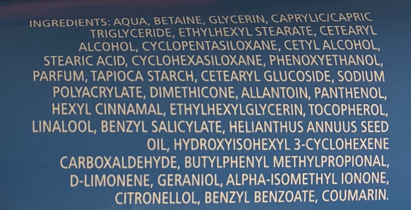 Butane, Isobutane, Propane, Cyclomethicone, Aluminum Chlorohydrate, Isopropyl Palmitate, C12-15 Alkyl Benzoate, Palmitamidopropyltrimonium Chloride, Octyldodecanol, Disteardimonium Hectorite, Propylene Carbonate, Dimethiconol, Propylene Glycol, Benzyl Alcohol, Alpha-Isomethyl Ionone, Citronellol, Benzyl Salicylate, Parfum