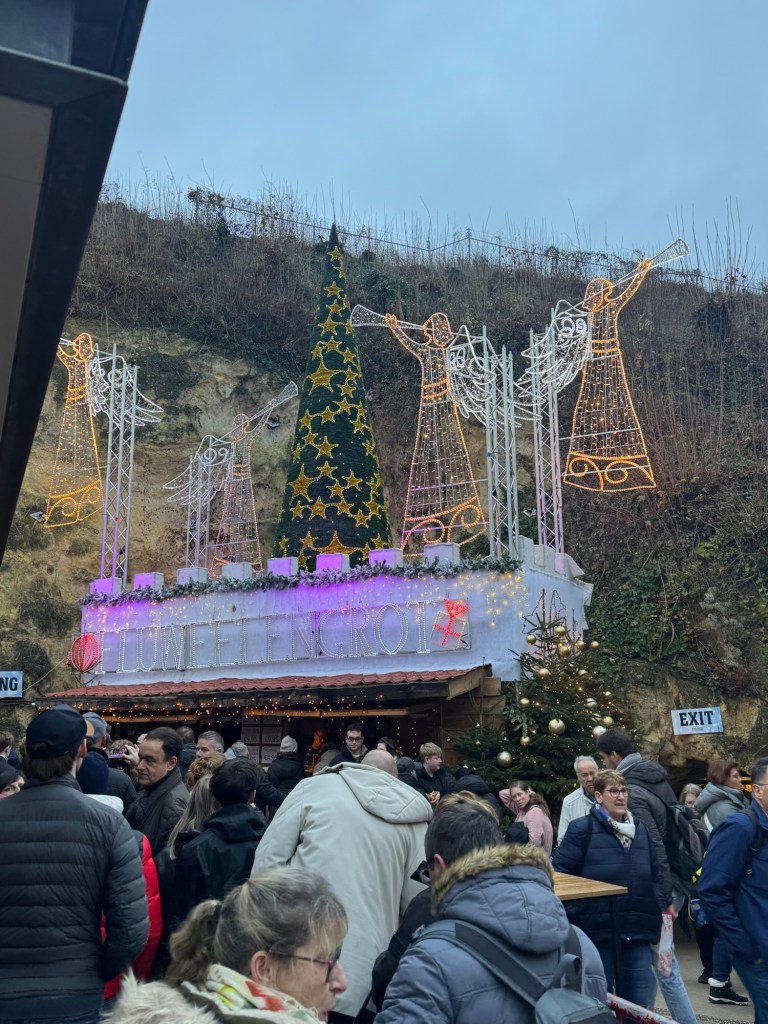 De Kerstmarkten in Valkenburg staan op het programma vandaag, en al snel werd duidelijk dat ik niet de enige was met dit plan … Vanaf het station volgde ik samen met een flinke mensenmassa de weg richting de grotten.