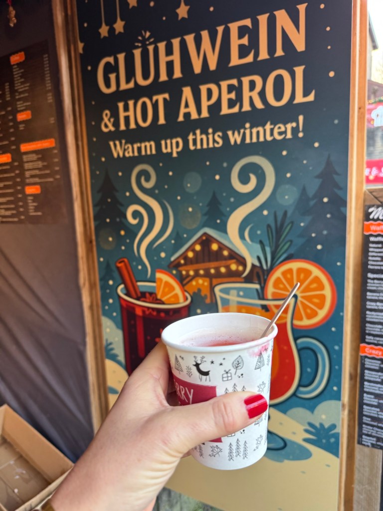 De markt stelde teleur, dus trakteerde ik mezelf op een glühwein Aperol. Een combinatie die ik nog niet kende, maar die verrassend lekker bleek te zijn.