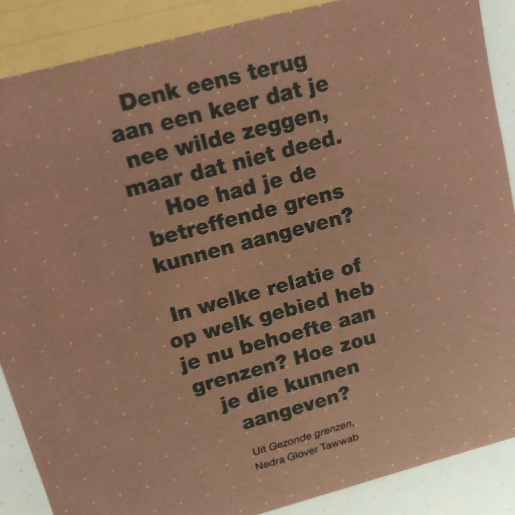 Tijdig grenzen stellen. Het is een van mijn ontwikkeldoelen voor tijdens de coaching. En hoe “toevallig” dat juist dit blaadje in mijn Flow scheurkalender zat.