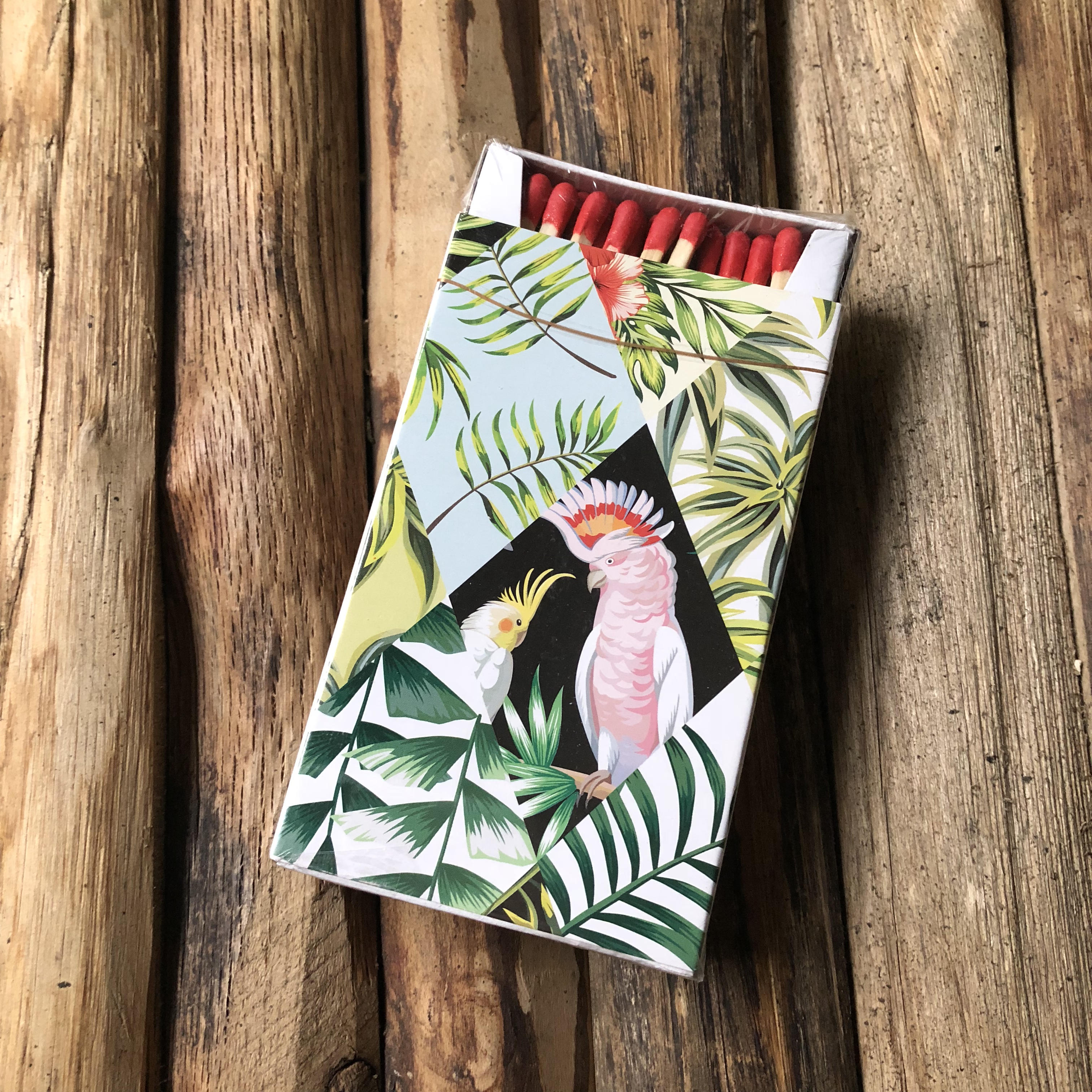 Ik gebruik niet heel vaak lucifers, maar voor zo af en toe vind ik het wel wat hebben om heel bewust een lucifer aan te steken, een kaars te doen ontbranden, van de zwavelgeur te genieten, en vervolgens de lucifer weer uit te blazen. Ik doe dat vaak bij devotiekaarsen. Dit doosje maxi lucifers met prachtige botanische afbeelding kan ik dan ook goed gebruiken.