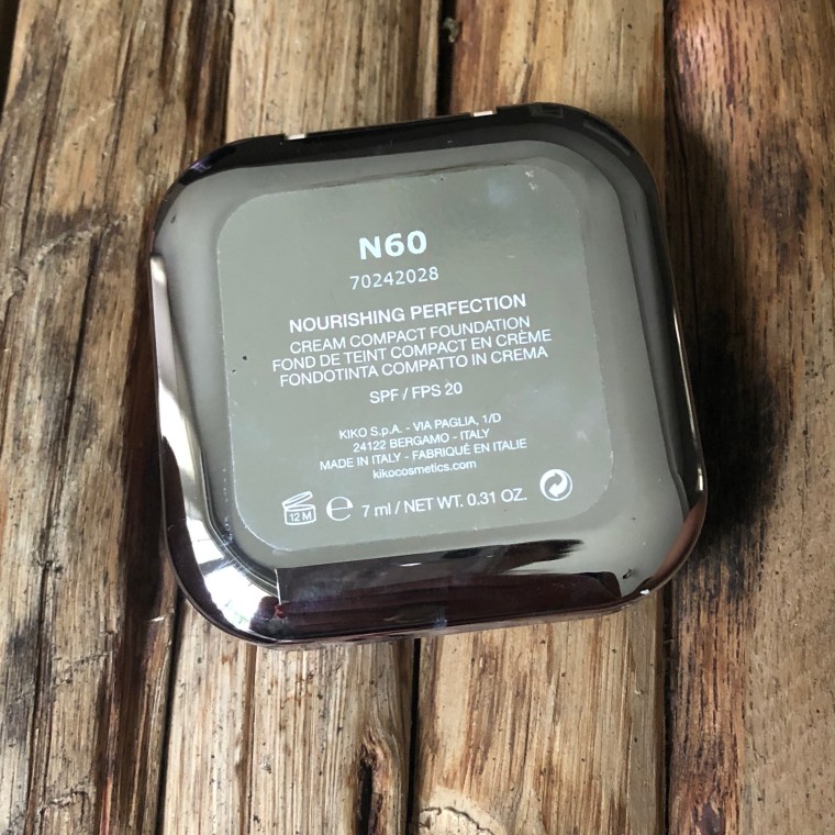 Van KIKO maakte ik een verpakking nourishing perfection (=compacte crème-foundation met SPF20 die, verzachtend en highlightend werkt) op.
