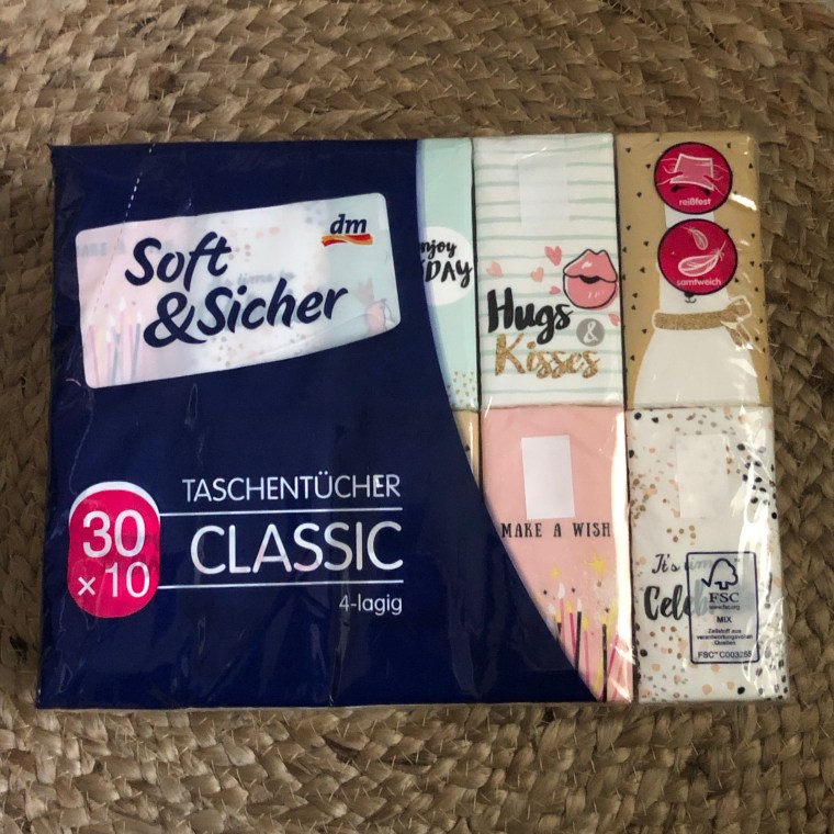 Soft&Sicher Taschent. 30×10 st. 1,85Van wegwerpzakdoekjes zijn wij grootverbruiker, dus dit big pack met wel 30 verpakkingen in leuk zomers design komt bij ons wel van pas !