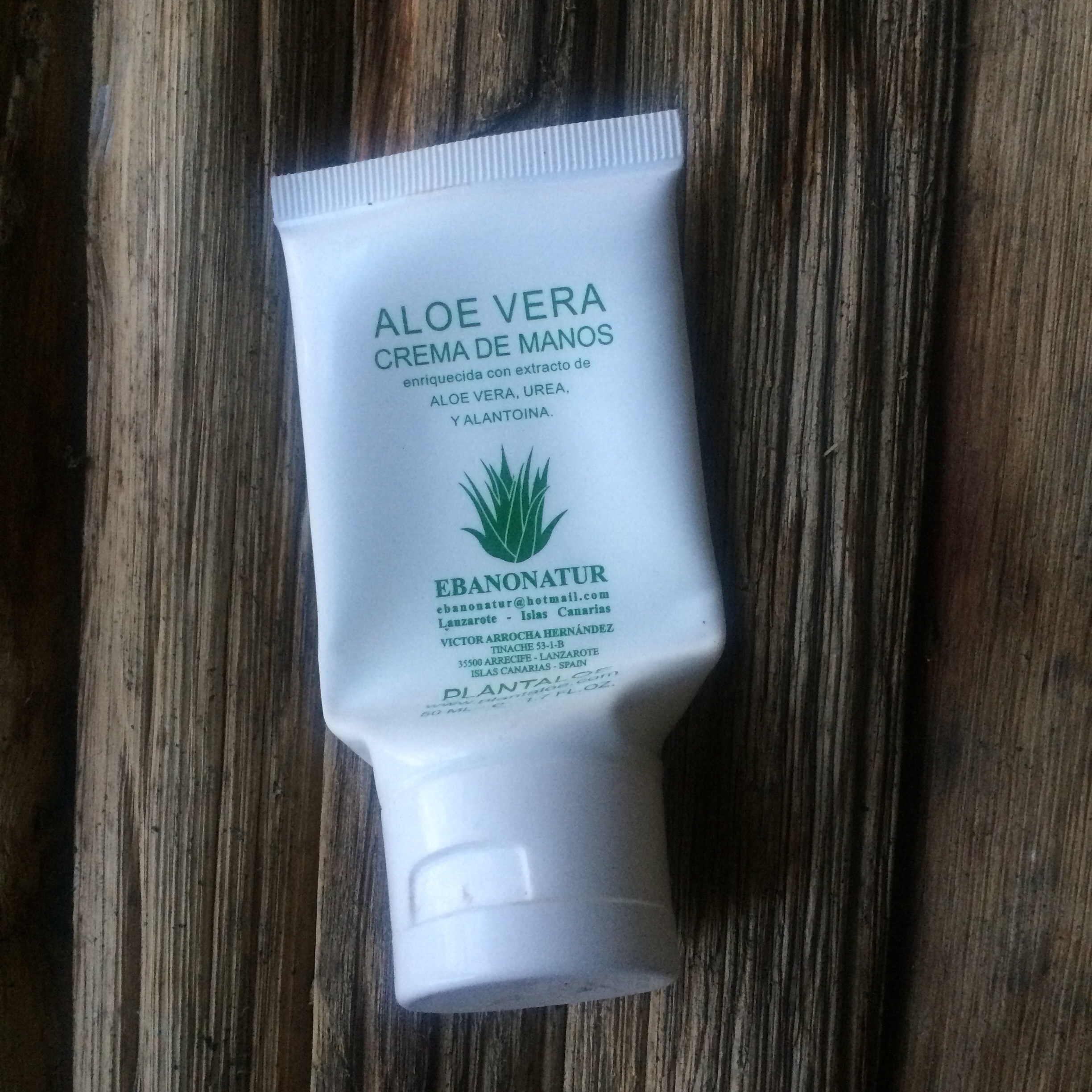 Een tube Aloe Vera crema de manos, die ik tijdens mijn recente zomervakantie op La Palma kocht.