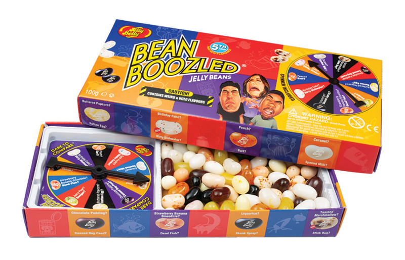 BeanBoozled challenge is een spel bestaande uit jelly beans en een spinner. Je moet eerst de spinner draaien, en die geeft dan aan welke kleur jelly bean je moet eten. Van elke kleur bestaan 2 varianten : een normale of een hele vieze.