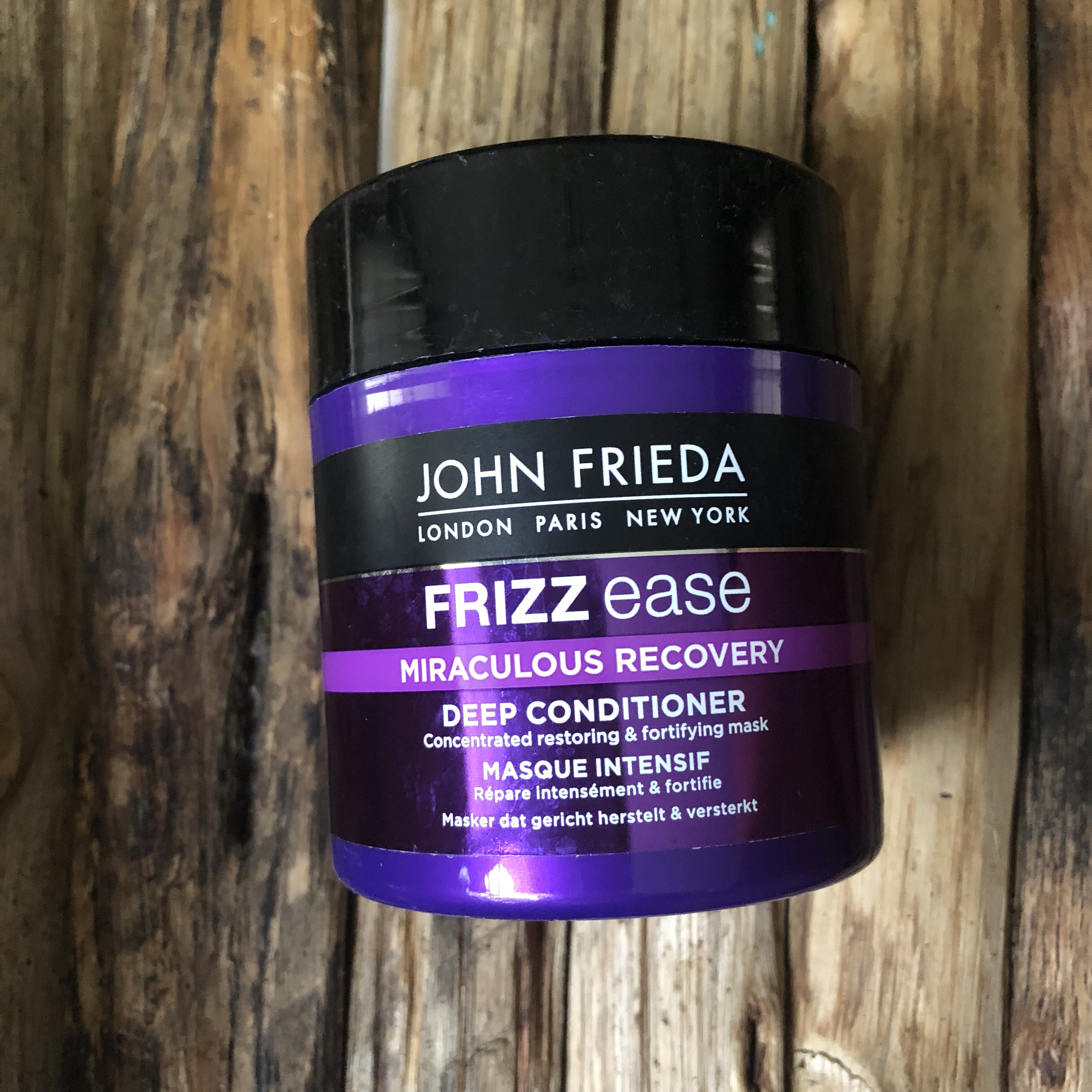 Omdat mijn haren na het wassen zo ontzettend droog zijn, gebruik ik sinds kort naast mijn reguliere shampoo en conditioner wekelijks een zgn. deep conditioner, en wel de John Frieda Frizz Ease Miraculous Recovery Intensive Masque . Na gebruik voelen mijn haren inderdaad zachter en verzorgd aan, en hebben ze een prachtige glans. Ik heb dan ook direct een nieuwe pot in gebruik genomen.